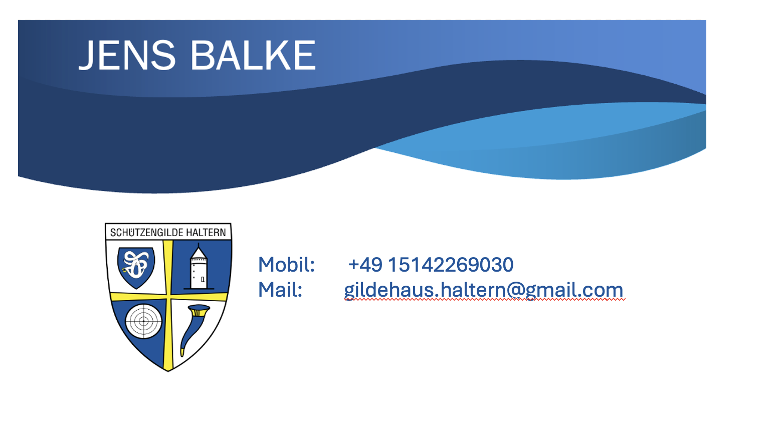 • Die Getränkelieferung erfolgt über den Getränkeverleger derSchützengilde Haltern e.V. und wird mit der Raummiete zu marktüblichen Konditionen abgerechnet.